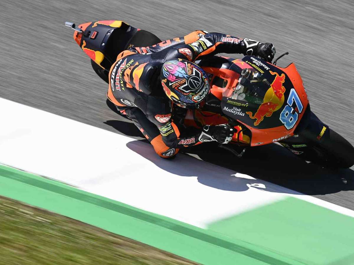Sem sequer um intervalo maior após o anúncio da morte de Jason Dupasquier, a Moto2 largou no horário previsto na Itália, desfalcada de Nicolò Bulega, que se machucou, e de Tom Lüthi, que preferiu não correr para acompanhar a família do piloto da Moto3 no acidente.