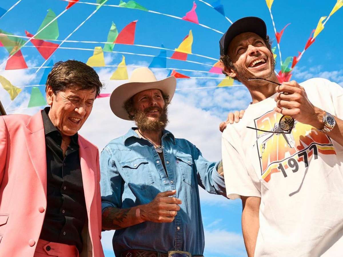 Além de Valentino Rossi, Marco Bezzecchi, Stefano Manzi e Francesco Bagnaia também participaram do clipe de Gianni Morandi (Foto: Reprodução)