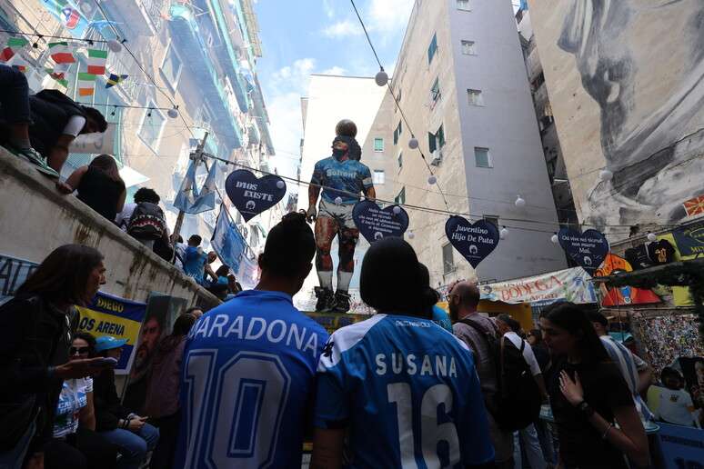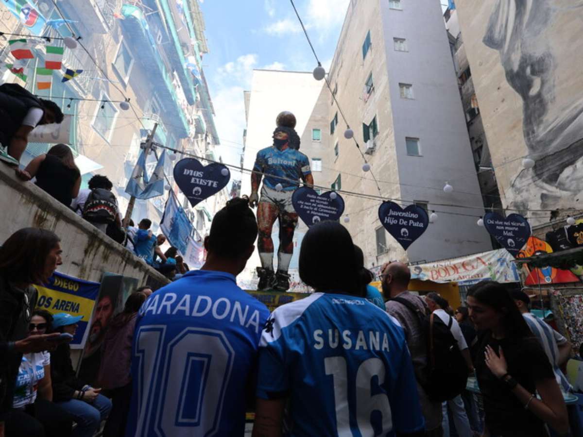 A escultura, produzida pelo artista ítalo-argentino Salvador Gaudenti, tem 6,2 metros de altura e está localizada no bairro Quartieri Spagnoli, no coração de Nápoles.