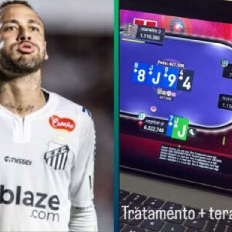 Na imagem compartilhada, o camisa 10 surge com o pé elevado e a região lesionada em cuidados, em paralelo às cartas virtuais exibidas na tela. Chama atenção o detalhe do jogo: Neymar aparece com mais fichas na mesa e segura uma mão promissora, uma dupla de valetes antes da última virada.