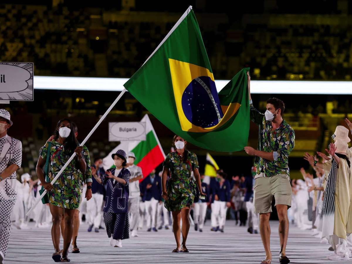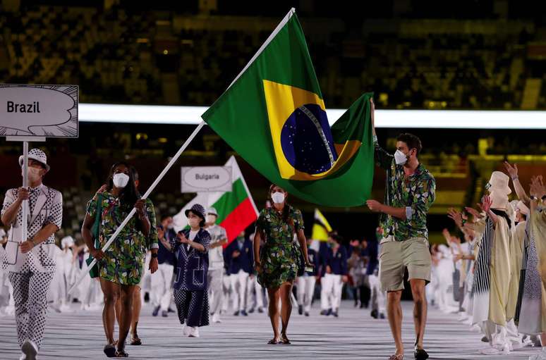 Bruno Mossa Rezende, o Bruninho do vôlei, e Ketleyn Quadros, do judô, foram os porta-bandeiras da delegação brasileira.