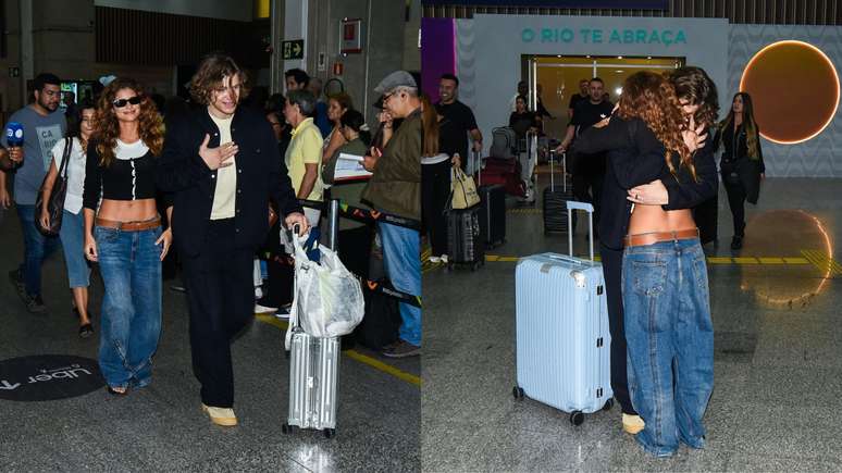 Atleta desembarcou no Rio de Janeiro na manhã desta quarta-feira, 25, e foi clicado trocando beijos e abraços com a atriz da Globo