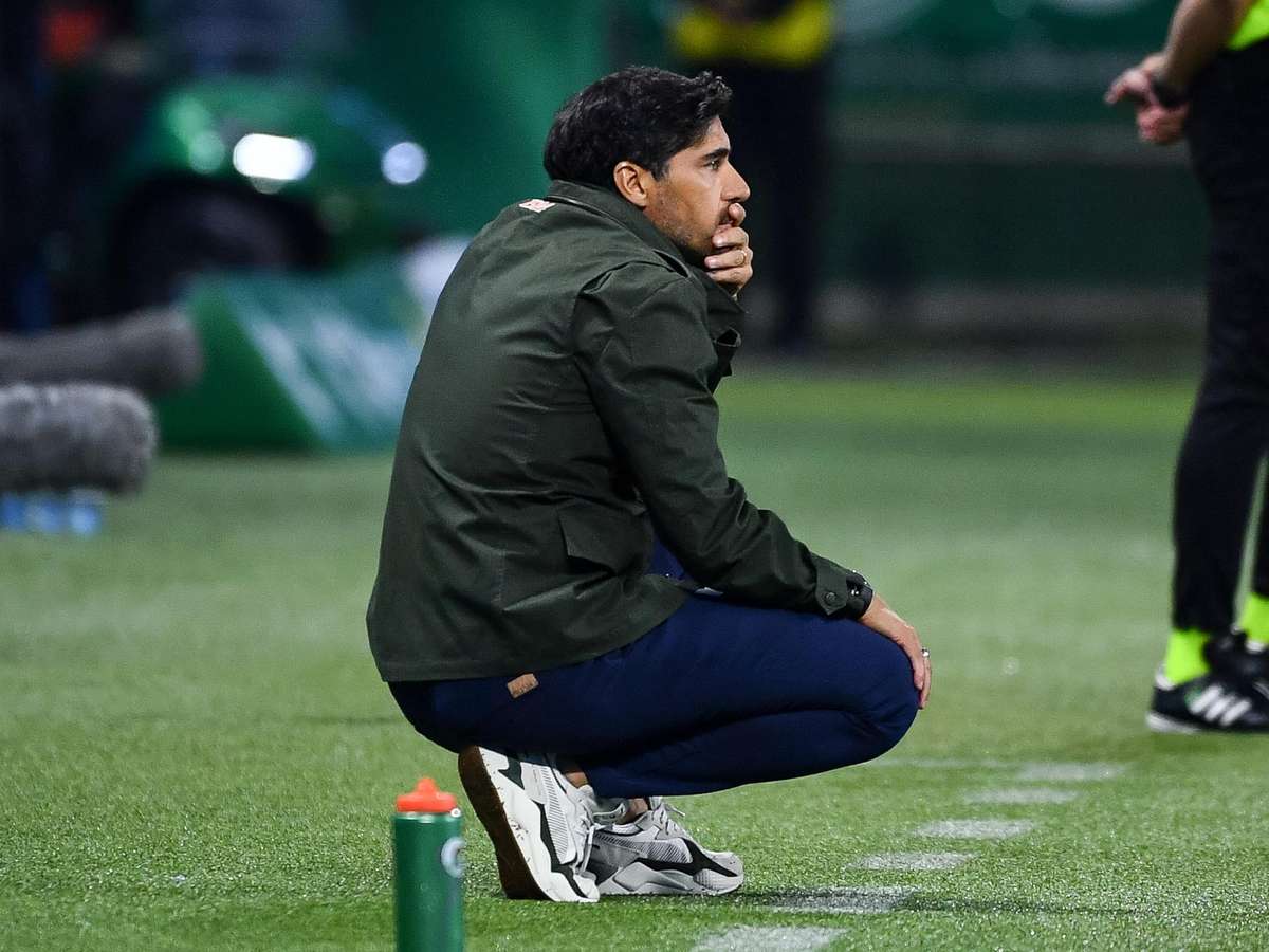 Abel Ferreira parece não ter gostado da atuação do Palmeiras e chutou o microfone da transmissão após o apito final.