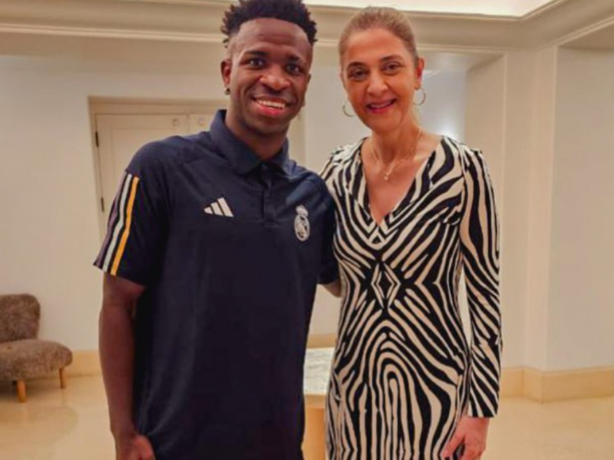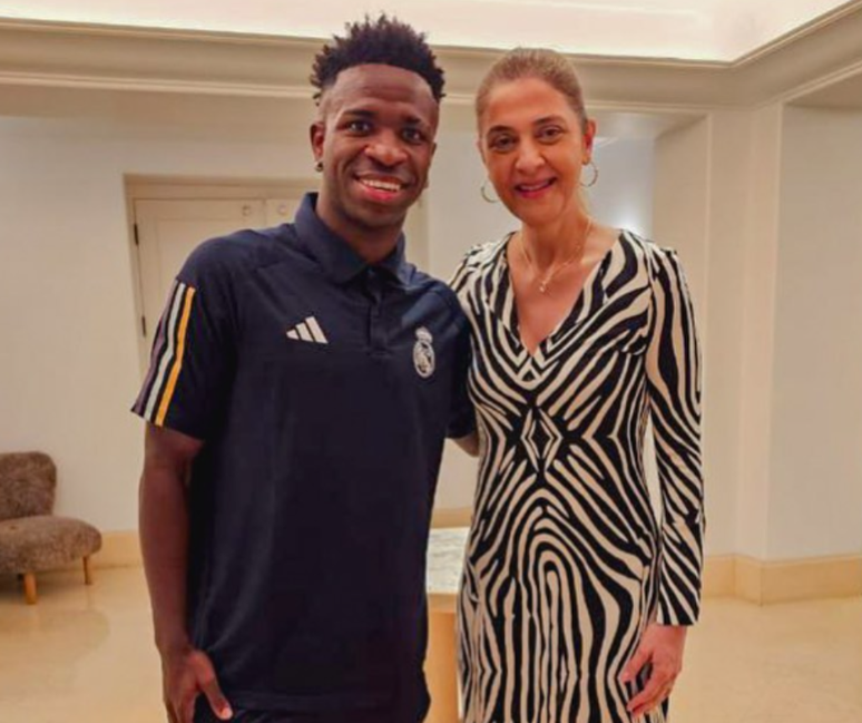 Após torcida do Palmeiras pedir reforços, Leila Pereira posta foto com Vini Jr. nos EUA