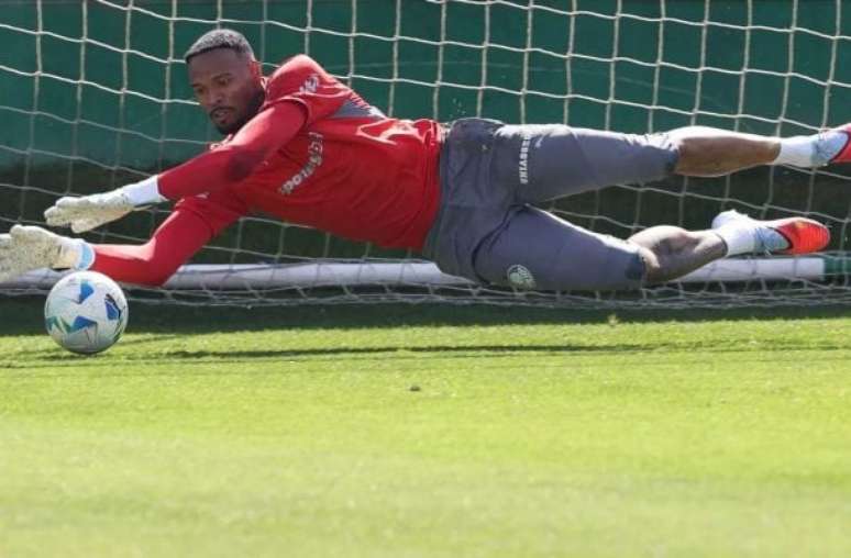 Apresentado na última terça-feira (19), o goleiro já participou dos treinos na Academia de Futebol nesta quarta. O jogador de 26 anos assinou com o clube até 2030 e se junta a Weverton e Marcelo Lomba como opções para a meta alviverde.