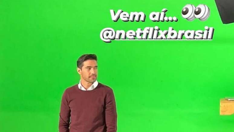 Em sua página no Instagram, Abel Ferreira fez uma publicação em que aparece em uma sessão de fotos em um estúdio, com um chroma key ao fundo, o famoso fundo verde usado para a criação cinematográfica de cenários virtuais. No post, o técnico do Palmeiras marcou a página da Netflix no Brasil.