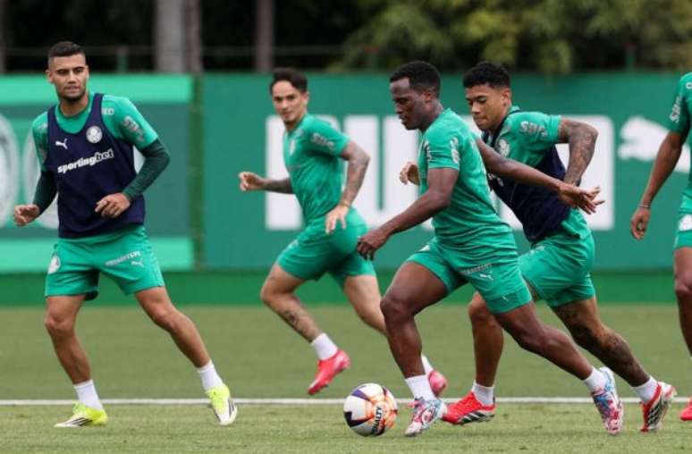 Mais uma vez, Jhon Arias participou das movimentações com o grupo de jogadores. O novo reforço do Verdão já está regularizado no Estadual e pode virar opção para o treinador para o duelo de sábado.