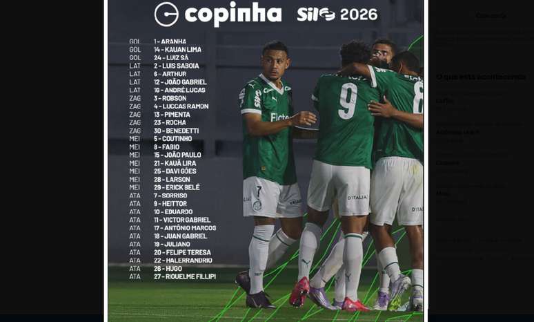 O Palmeiras estreia na Copinha 2026 na próxima segunda-feira (5), às 19h30 (de Brasília), diante do Monte Roraima (RR), na Arena Barueri. O Verdão está no grupo 27 da competição, ao lado também de Batalhão (TO) e Remo (PA). A cidade-sede do grupo é Barueri - que, por coincidência, também receberá jogos do time profissional enquanto a troca de gramado do Allianz Parque é realizada.