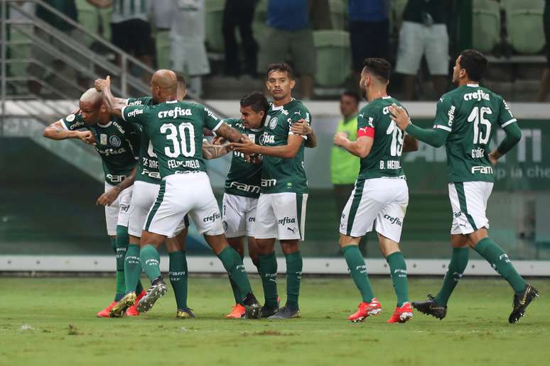 O time alviverde somou 12 pontos em cinco rodadas, ante 13 do Inter e 15 do Cruzeiro. O time gaúcho enfrenta nesta terça-feira o River Plate, em Buenos Aires, e se empatar pode ser ultrapassado pelo Palmeiras na tabela geral da fase de grupos. Já o Cruzeiro, que recebe o Emelec no Mineirão na quinta-feira, teria de ser derrotado dentro de casa para possibilitar que o clube alviverde some mais pontos.