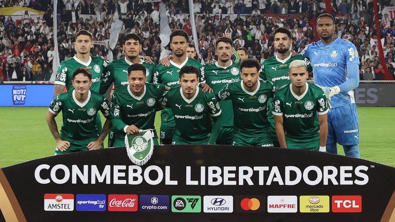 Elenco palmeirense durante o jogo de ida da semifinal da CONMEBOL Libertadores, contra a LDU