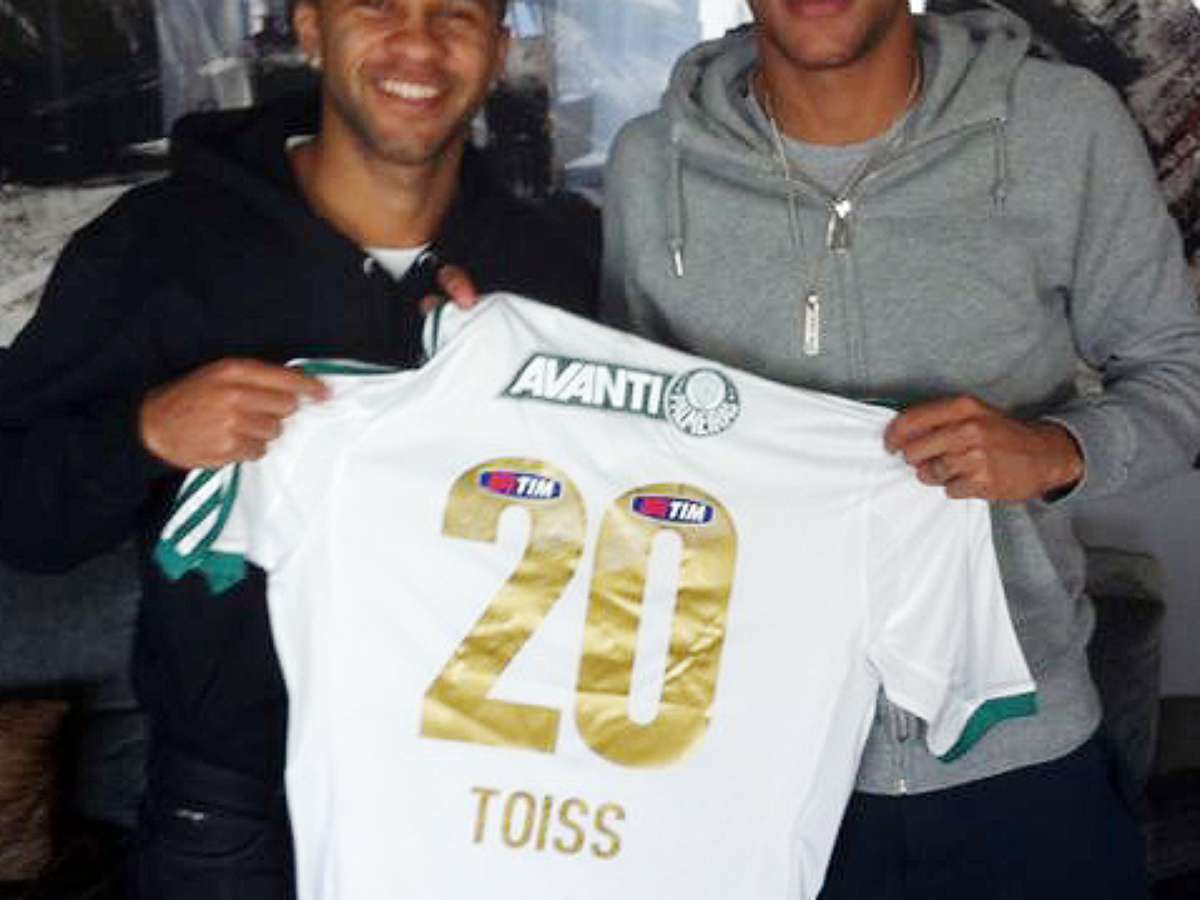 Serginho entrega camisa do Palmeiras a Neymar com inscrição "Toiss"