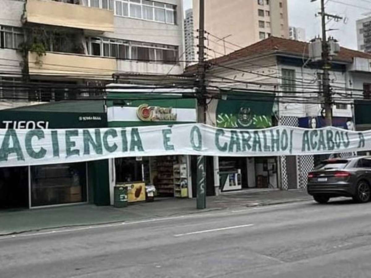 Torcedores do Palmeiras estendem nova faixa de protesto por fase ruim