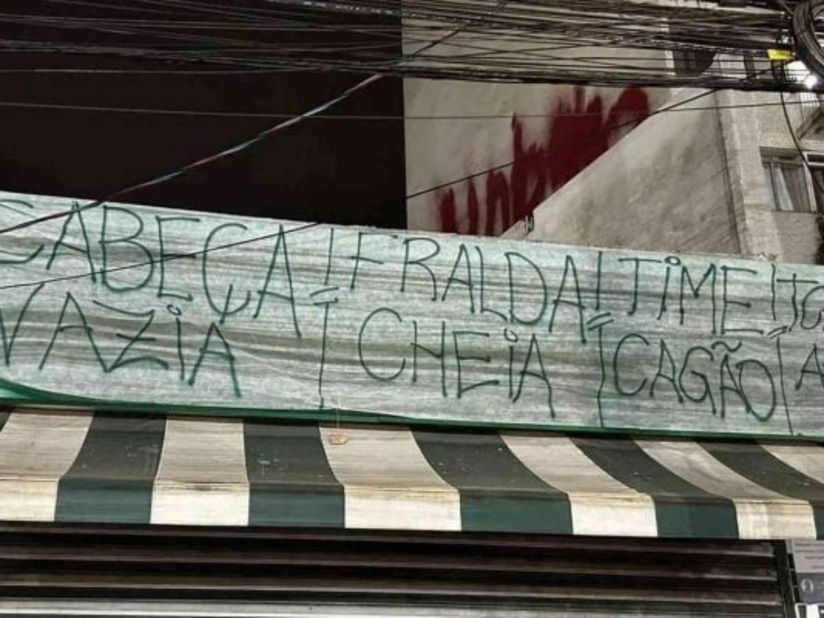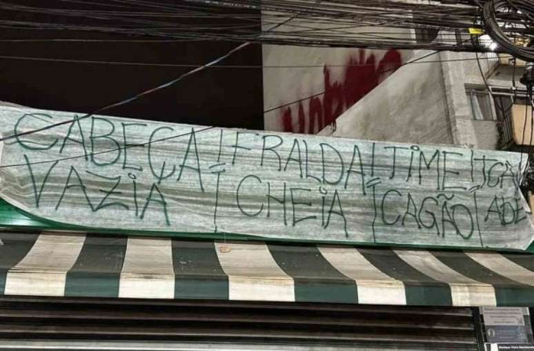 Outra pedia a saída do treinador, com um direto "Fora, Abel", enquanto uma terceira apontava críticas à gestão: "Presidente inexistente, diretoria incompetente".