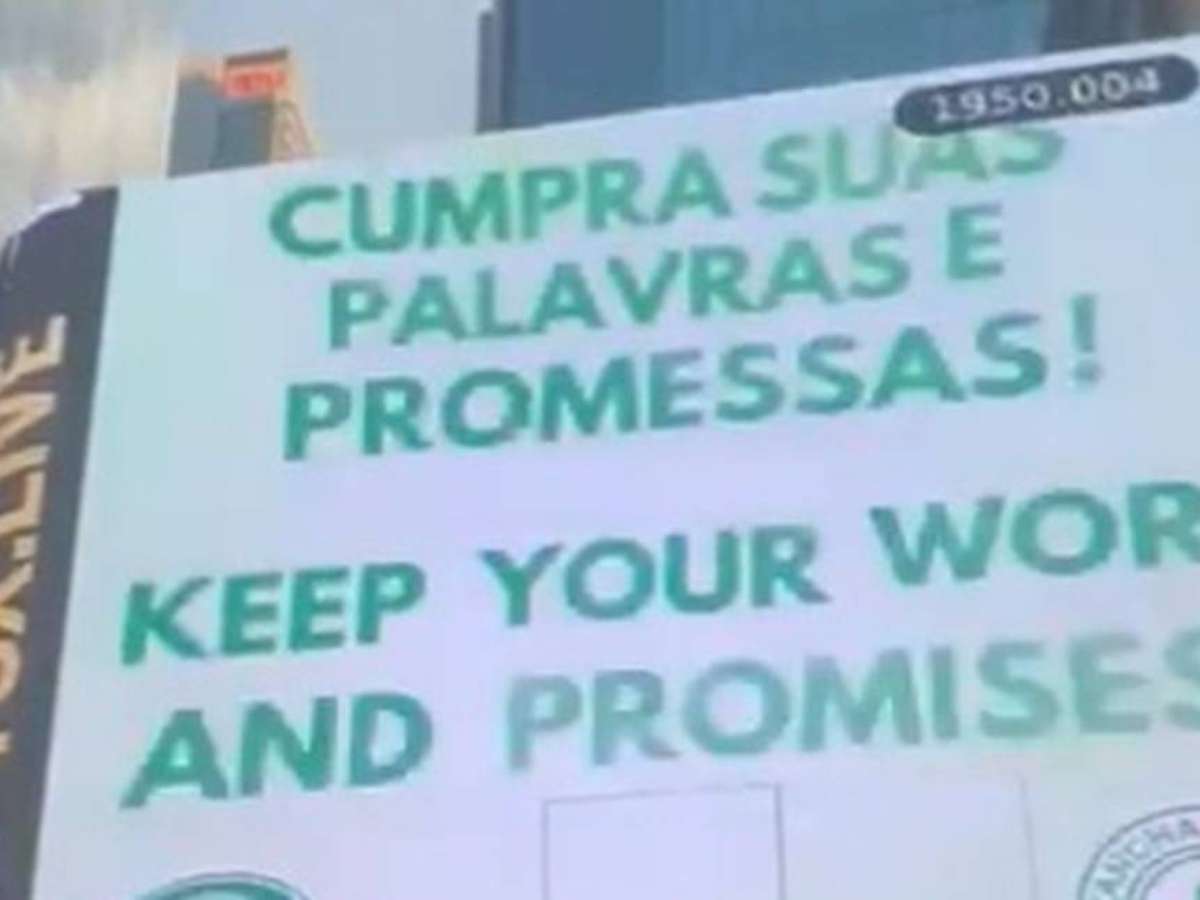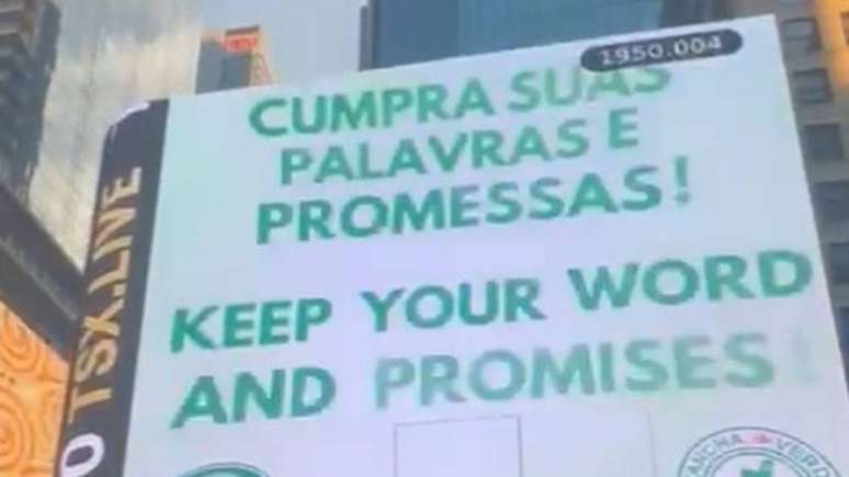 Além da mensagem nas ruas de Nova York, a torcida ainda se manifestou nas redes sociais. "Já que ela tá de férias, enquanto a torcida inteira do Palmeiras está pedindo reforços. O protesto chega até ela", escreveu.