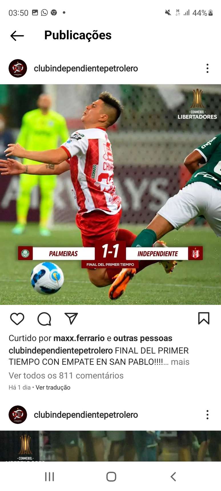 Se você que não é muito ligado em futebol a ponto de acessar o Instagram oficial do Independiente Petrolero, que levou de 8 a 1 do Palmeiras na terça-feira (14), vai achar que o jogo terminou empatado por 1 a 1. É que as postagens do clube boliviano pararam quando o placar ainda era honroso para o visitante, na partida disputada no Allianz Parque, pela Libertadores.