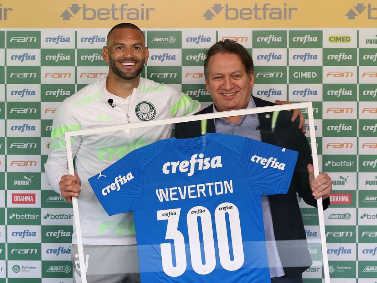 Weverton completou 300 jogos com a camisa do Palmeiras na vitória sobre o Barcelona de Guayaquil, de virada, por 4 a 2, no Allianz Parque. Além de somar 308 partidas pelo Verdão, o camisa 21 também é o goleiro que mais conquistou títulos pela equipe paulista, ao todo foram 10 conquistas.