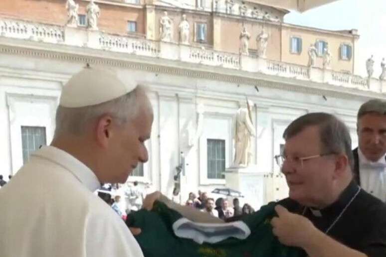 Papa Leão XIV ganha suposta camisa falsificada do Palmeiras