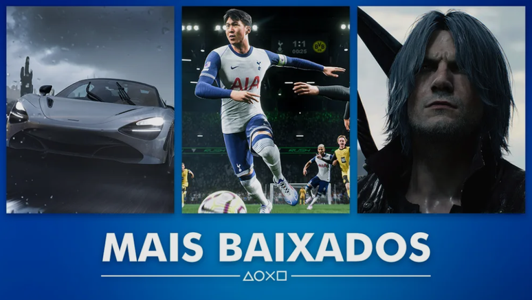 No PlayStation 5, Forza Horizon 5 lidera as preferências, cruzando a linha de chegada na primeira posição. Na sequência, os combates intensos de Mortal Kombat 11 garantem o segundo lugar, enquanto Devil May Cry 5 Special Edition fecha o pódio com sua ação frenética.