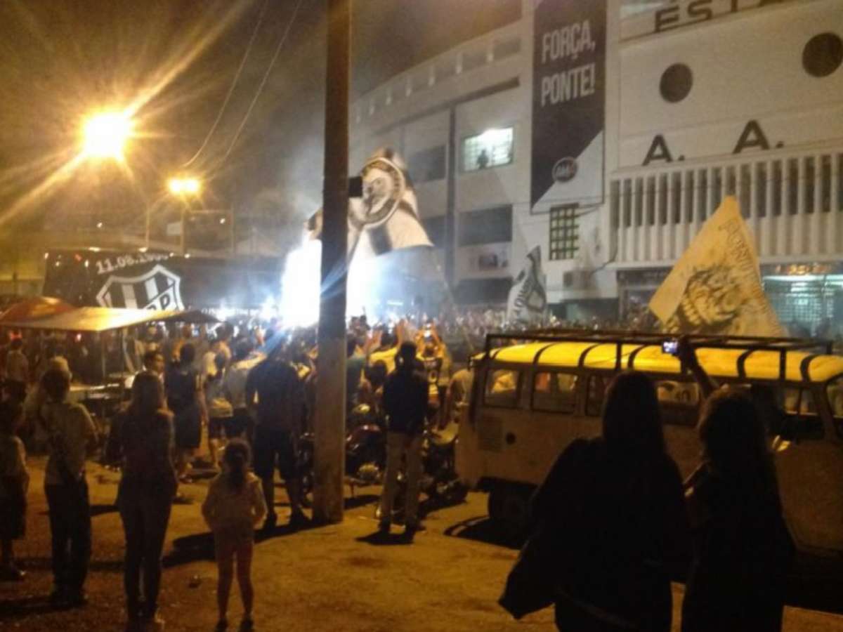 Até parecia que a Ponte Preta havia conquistado um título de expressão. Por volta das 21h, alguns torcedores já começaram a chegar ao Majestoso, mas a movimentação ficou intensa mesmo perto das 22h. Vestir a camisa alvinegra parecia que era uma exigência, assim como cantar hino e outras músicas do clube. Quando o Gorilão apontou nas redondezas do estádio, sinalizadores e rojões foram acesos e iluminaram ainda mais a festa.