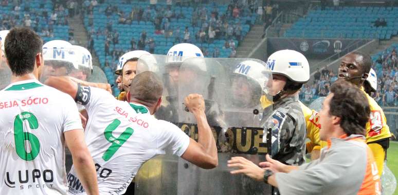 Uma grande confusão aos 35min do segundo tempo marcou o duelo entre Grêmio e Portuguesa, que terminou com vitória por 3 a 2 para o time gaúcho na Arena, em Porto Alegre. O juiz Jaílson Freitas realizou uma sequência de ações que revoltou o elenco do time paulista, que partiu para cima da arbitragem. A polícia teve que ser chamada para conter a confusão, mas mesmo assim a partida ficou paralisada por cerca de 5 minutos, tamanha a revolta dos jogadores rubro-verdes.