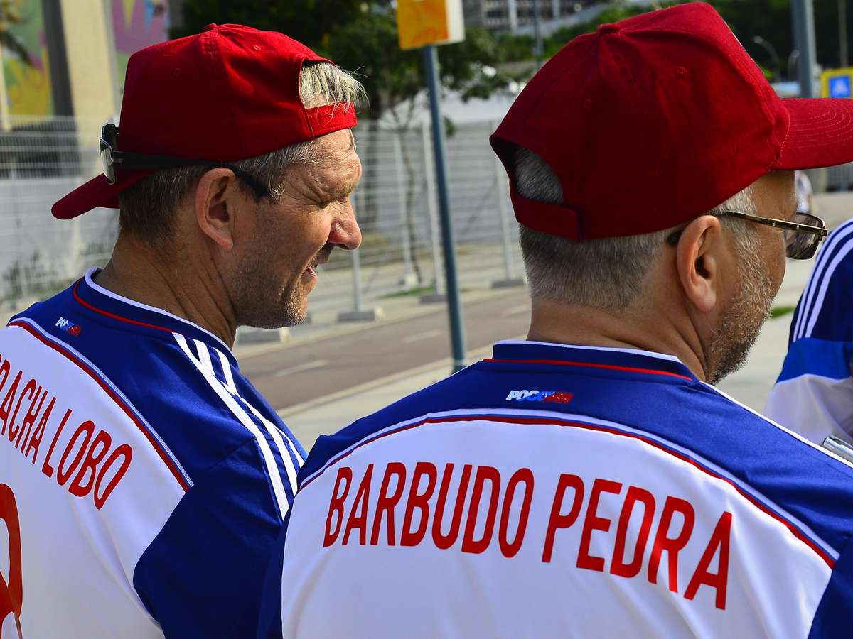Na véspera do jogo Rússia x Bélgica no Maracanã, uma "seleção" russa com torcedores com nomes nada usuais em camisas caminhava em volta do estádio. Para já entrar no clima da Copa do Mundo, "Grávida Cabeça", "Fofo Pinguim", "Borracha Lobo", "Desempregado", "Mudo Pássaro", "Mau Mocho", "Bondoso Travão", "Cozido Macho" e "Barbudo Pedra", nove russos com seus apelidos estampados na camisa da seleção de seu país, caminhavam para conhecer o estádio esbanjando alegria neste sábado. A empolgação era tanta que eles até carregaram - de surpresa - a repórter no colo.
