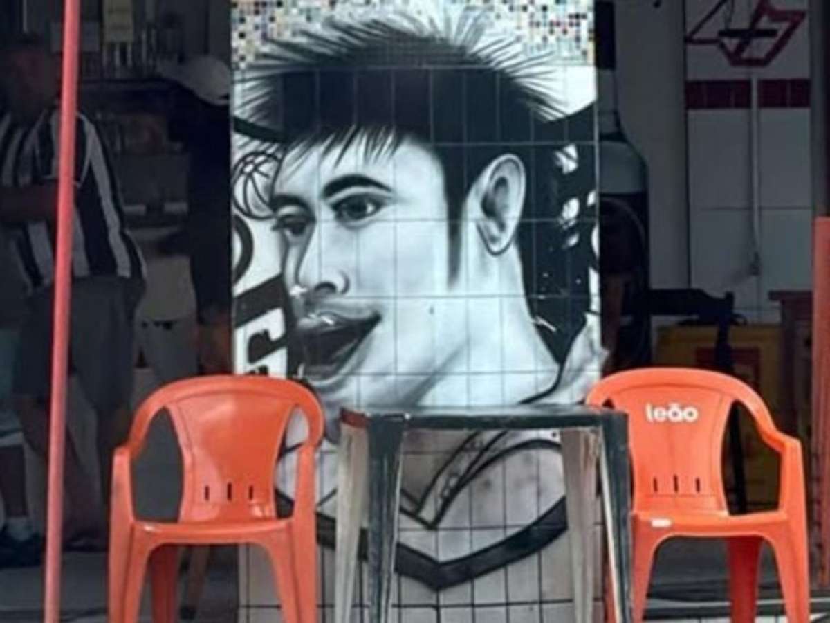 Arte exibida em estabelecimento em Santos chama a atenção do jogador, que brincou com a imagem