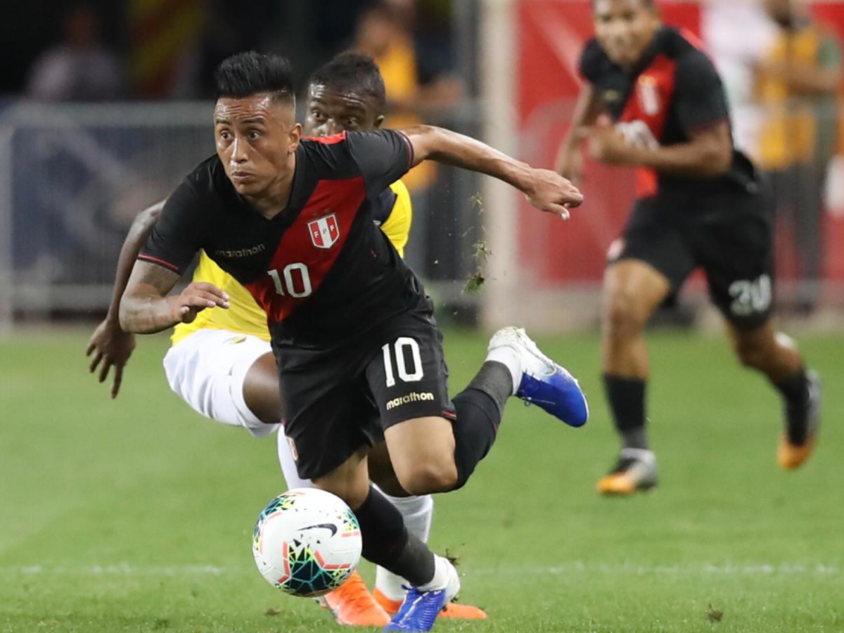 Christian Cueva tem 28 anos e não vingou no Peixe. Ele disputou 16 jogos em 2019 e não fez gol e nem deu assistência.
