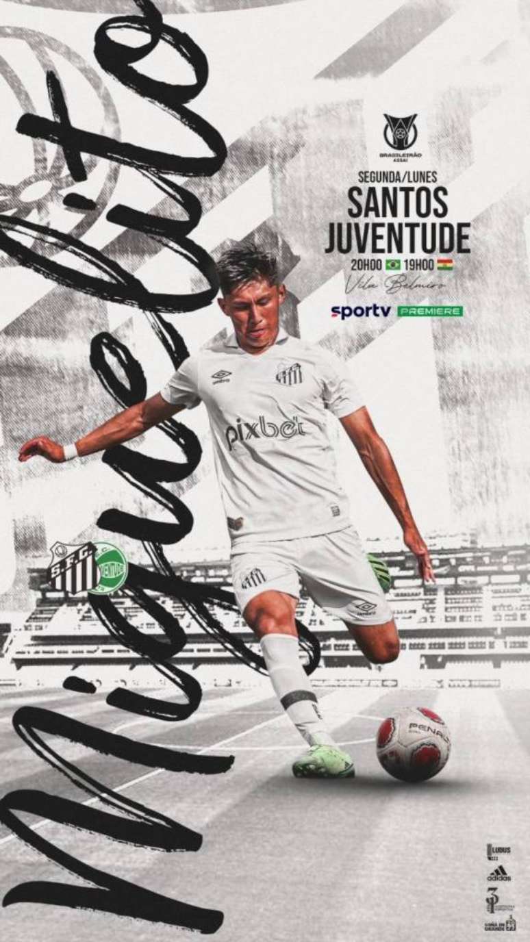 O Santos pode ter uma novidade para o confronto desta segunda-feira, diante do Juventude. Isso porque a assessoria do jovem boliviano Miguel Terceros, conhecido como Miguelito, publicou na noite deste domingo uma arte da partida em seu Instagram, o que normalmente é feito por jogadores que são relacionados para os jogos.