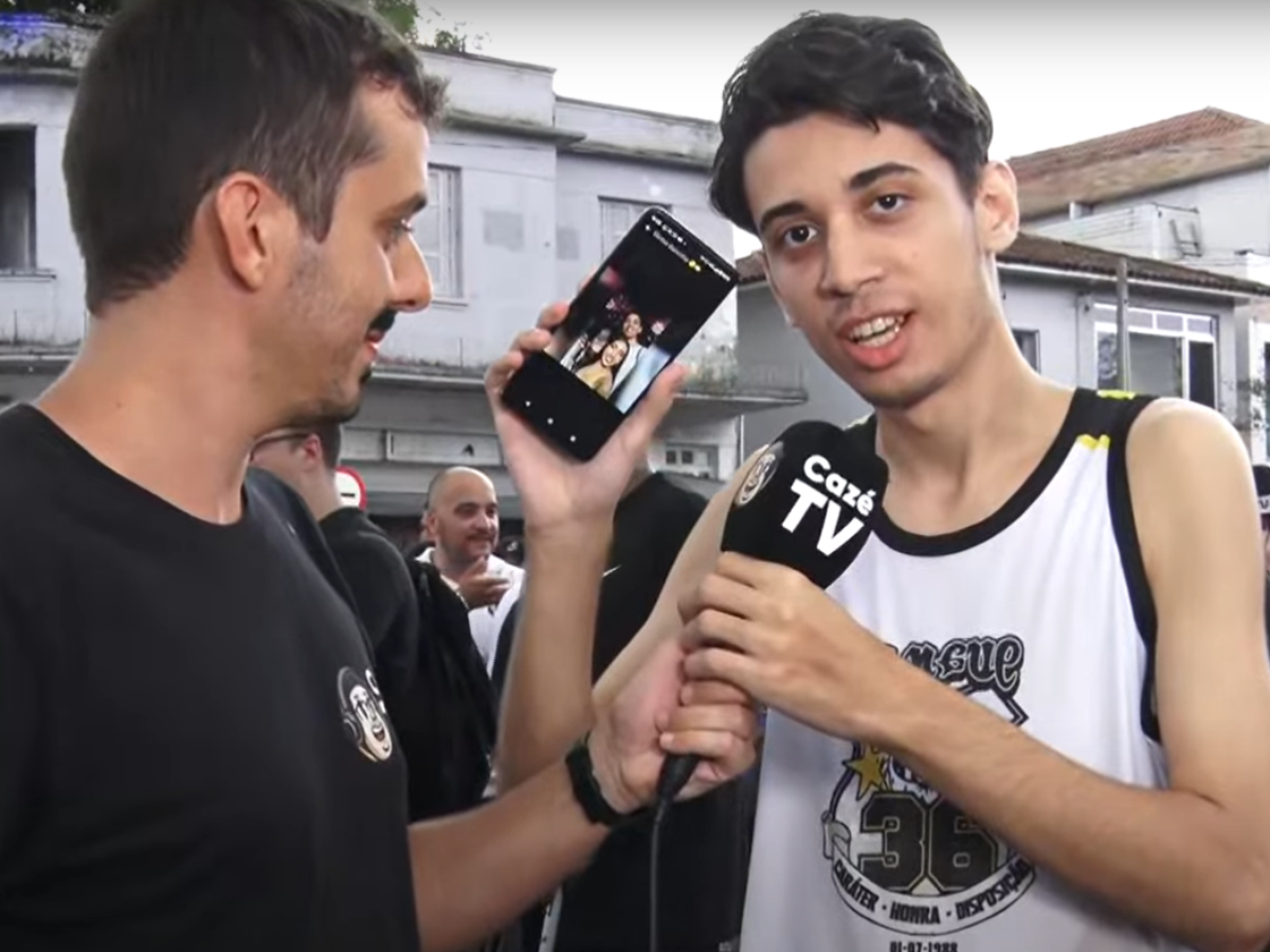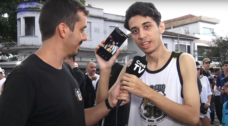 "Aí Pietra, eu vim para a Vila mesmo, tá? Não 'tô' fugindo, não 'tô' com outras 'minas', não. Porque é o Neymar, minha vida é o Neymar, e é isso", disse o torcedor, que ainda cobrou uma dívida de R$ 20 de um amigo, ao vivo, arrancando risadas da equipe de transmissão.