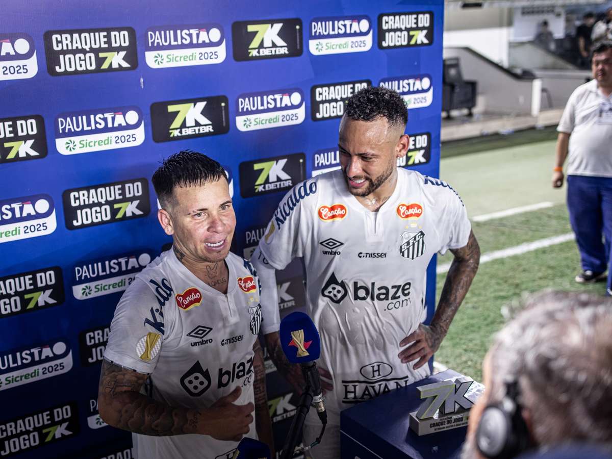 Neymar, por sua vez, evitou falar sobre a renovação de seu contrato, mas deixou claro que está focado em ajudar o Santos a construir um futuro promissor. O atacante prever o começo de uma "grande era"para o clube e falou sobre o processo de adaptação e reconexão com o futebol. "Vamos ter calma, vamos ter calma. É um contrato que nós fizemos pensando não somente entre os dois. Um está ajudando ao outro. O Santos está me ajudando, abriu as portas para eu me reencontrar com o futebol, me reencontrar com a alegria. Não queria fazer um contrato longo porque não sabia como iria voltar. Não sabia como ia me sentir nesses meses, tudo pode acontecer", disse o craque.