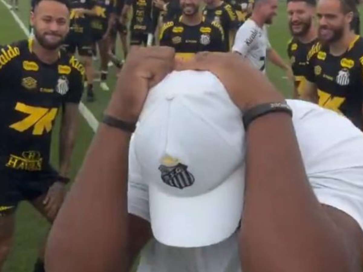 O craque publicou nas redes sociais um vídeo em que estava com os jogadores e mandou um recado para sua filha. Na sequência, Silas teve que passar por um "corredor polonês", recebendo chutes, em tom de brincadeira, do elenco santista.
