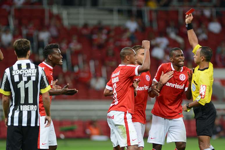 Aos 21min, Alex arriscou de fora da área e a bola saiu com muito perigo. A trave salvou o Santos em outros dois lances no primeiro tempo, em chutes de Wellington e Alan Patrick. E na volta do intervalo, o clima começou a ficar quente no Beira-Rio. Aos 10min, o árbitro marcou um falta na lateral de campo, a favor do time mandante, mas Paulão, que havia recebido um amarelo poucos minutos antes, reclamou até ser expulso.