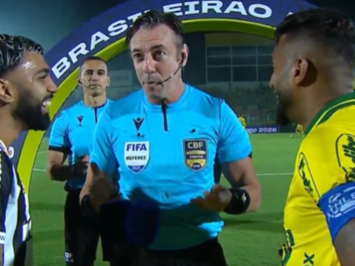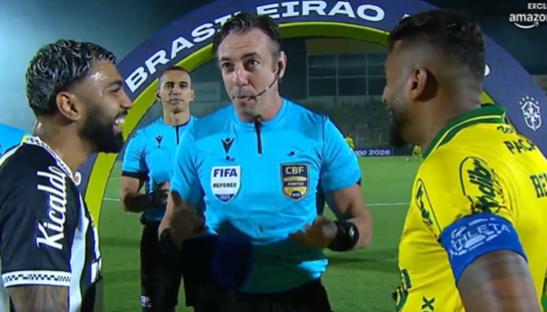 “Até porque eu te bato, Reinaldo”, disse Gabigol. O jogador do Mirassol, por sua vez, concordou e riu da brincadeira do atacante.