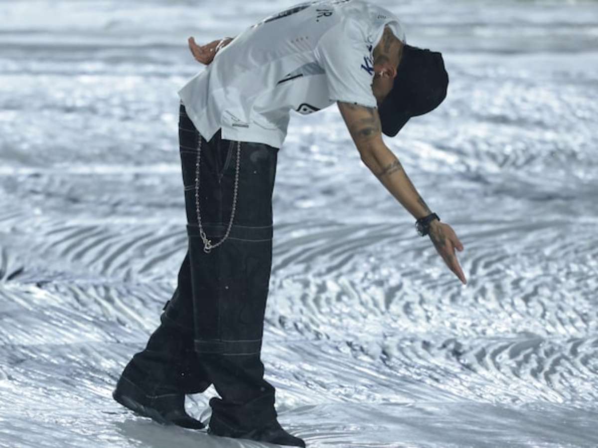 "É um dia muito especial pra mim", disse o jogador, logo interrompido pela torcida, com quem Neymar cantou junto o hino oficial do Santos. Ele usou na cabeça uma faixa com a frase '100% Jesus', igual à que havia usado em campo no início da carreira com o time alvinegro. "Falei ali dentro que quando eu era menino eu pisei na Vila Belmiro com essa faixa e eu não podia deixar de voltar sem."