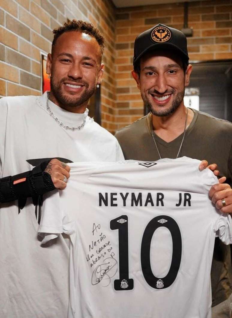 A churrascaria escolhida por Neymar pertence ao influenciador Netão Bom Beef, que ganhou uma camisa de presente do craque no local.