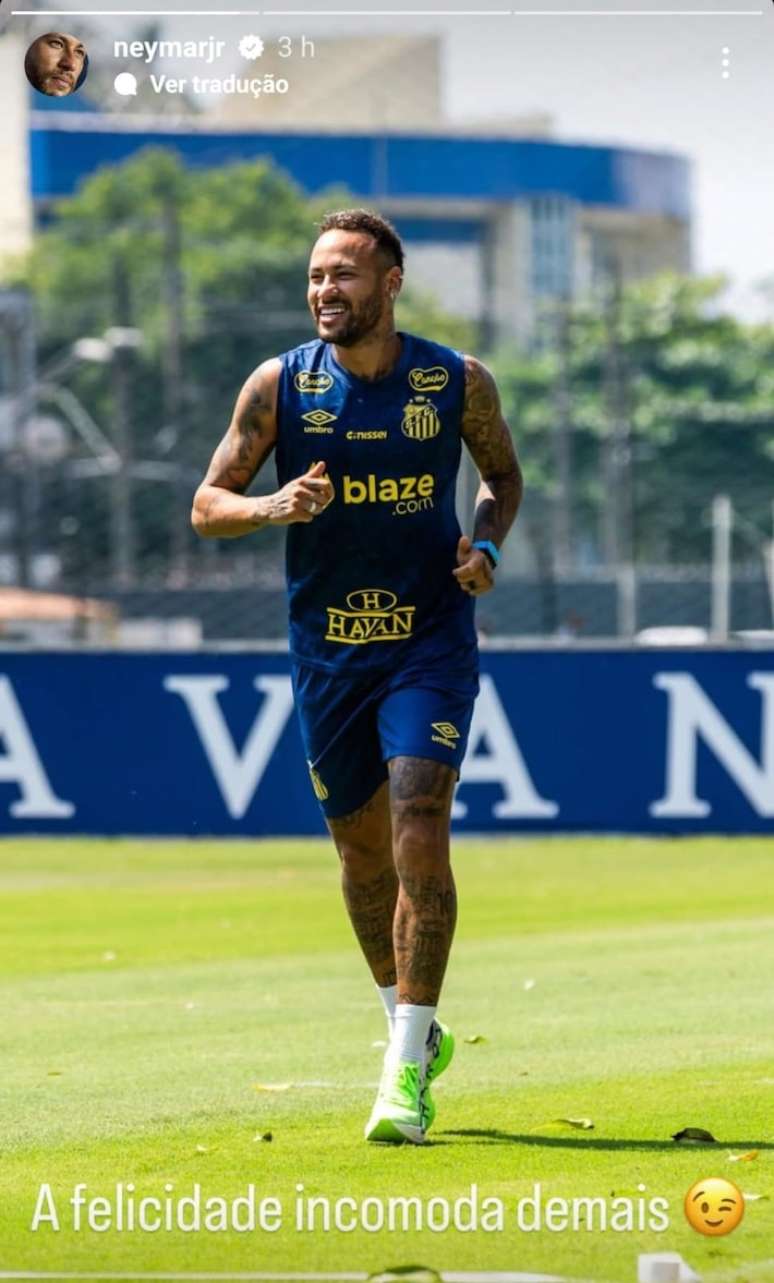 Em recuperação de um edema na coxa esquerda, Neymar usou suas redes sociais para postar imagens correndo no CT Rei Pelé e mandar indiretas aos críticos na noite desta quarta-feira. Alvo de críticas nas redes sociais e do apresentador Neto, o camisa 10 não atua desde o dia 2 de março, quando o Santos venceu o Red Bull Bragantino, por 2 a 0, pelas quartas de final do Paulistão, na Vila Belmiro. Na oportunidade, ele anotou o primeiro gol do jogo em cobrança de falta.