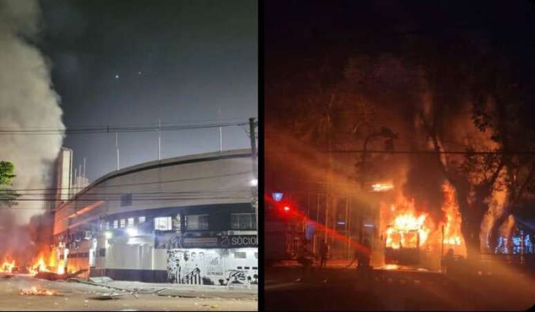 Ao menos dois ônibus e vários veículos foram incendiados durante a madrugada desta quinta-feira, 7. O policiamento foi acionado e pouco antes do resultado final entre Fortaleza e Santos, houve reforço na região da Vila Belmiro, estádio do clube.