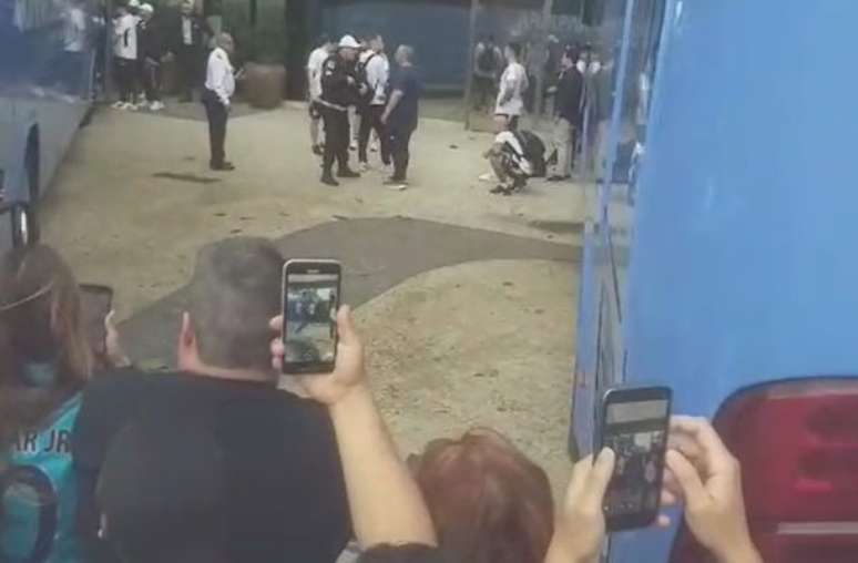 O Santos chegou ao Rio de Janeiro na tarde deste sábado (8/11) para enfrentar o Flamengo, neste domingo, pelo Campeonato Brasileiro. A delegação seguiu direto para o Hotel Hilton (antigo Meridien), em Copacabana, sob forte controle de segurançae controle. Para evitar a aproximação dos poucos torcedores — mesmo daqueles que queriam apenas prestigiar o time, tirar selfies ou pedir autógrafos —, foi montada uma barreira em frente ao hotel. Os ônibus que transportavam os jogadores e o staff santista estacionaram no calçadão. Mas com as portas praticamente encostadas na entrada principal do local.