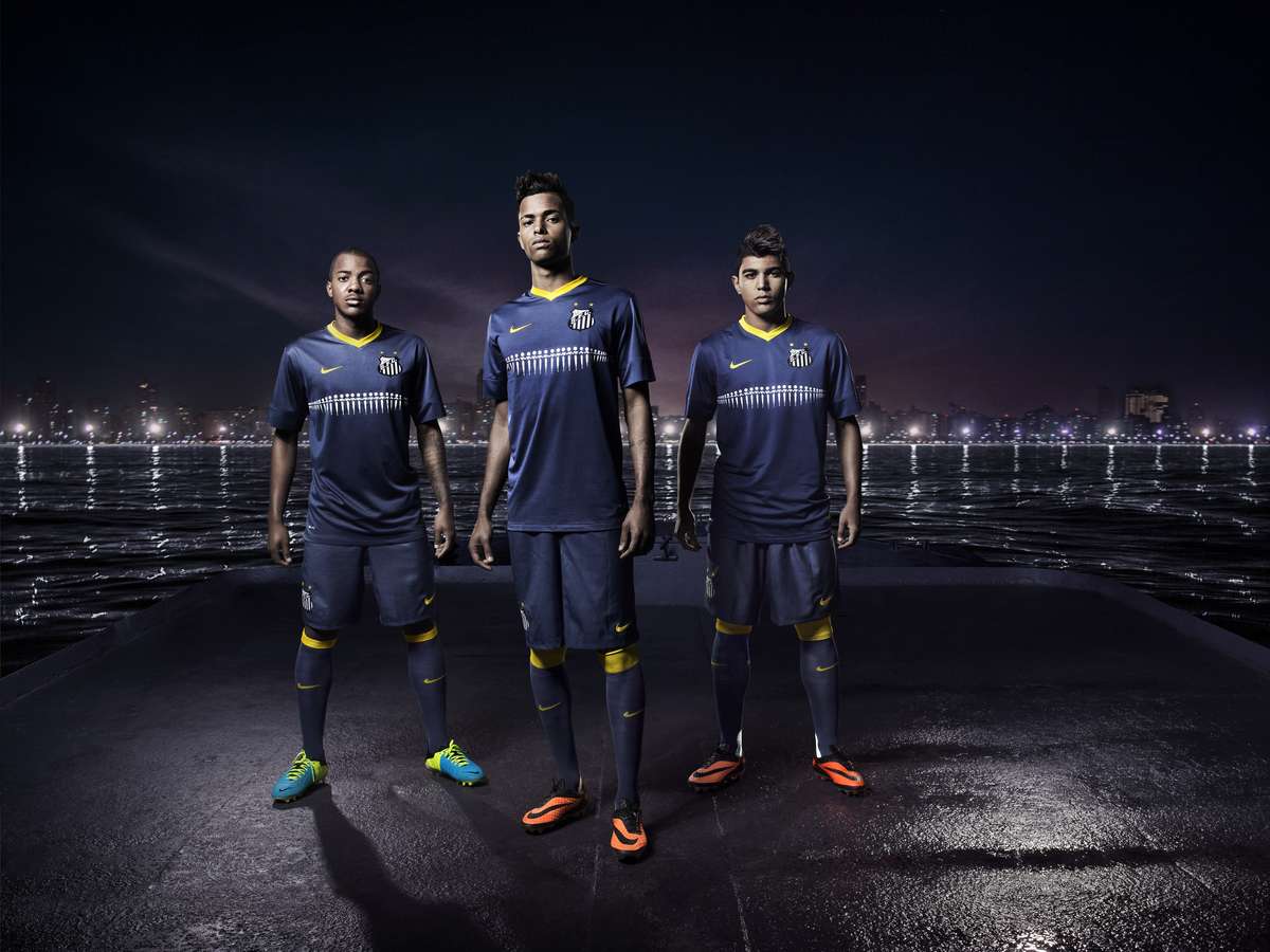 O Santos lançou seu uniforme número 3, nesta terça-feira, com homenagem à orla da cidade. Vitor Andrade, Giva e Gabriel foram os modelos para apresentar o modelo desenvolvido pela Nike