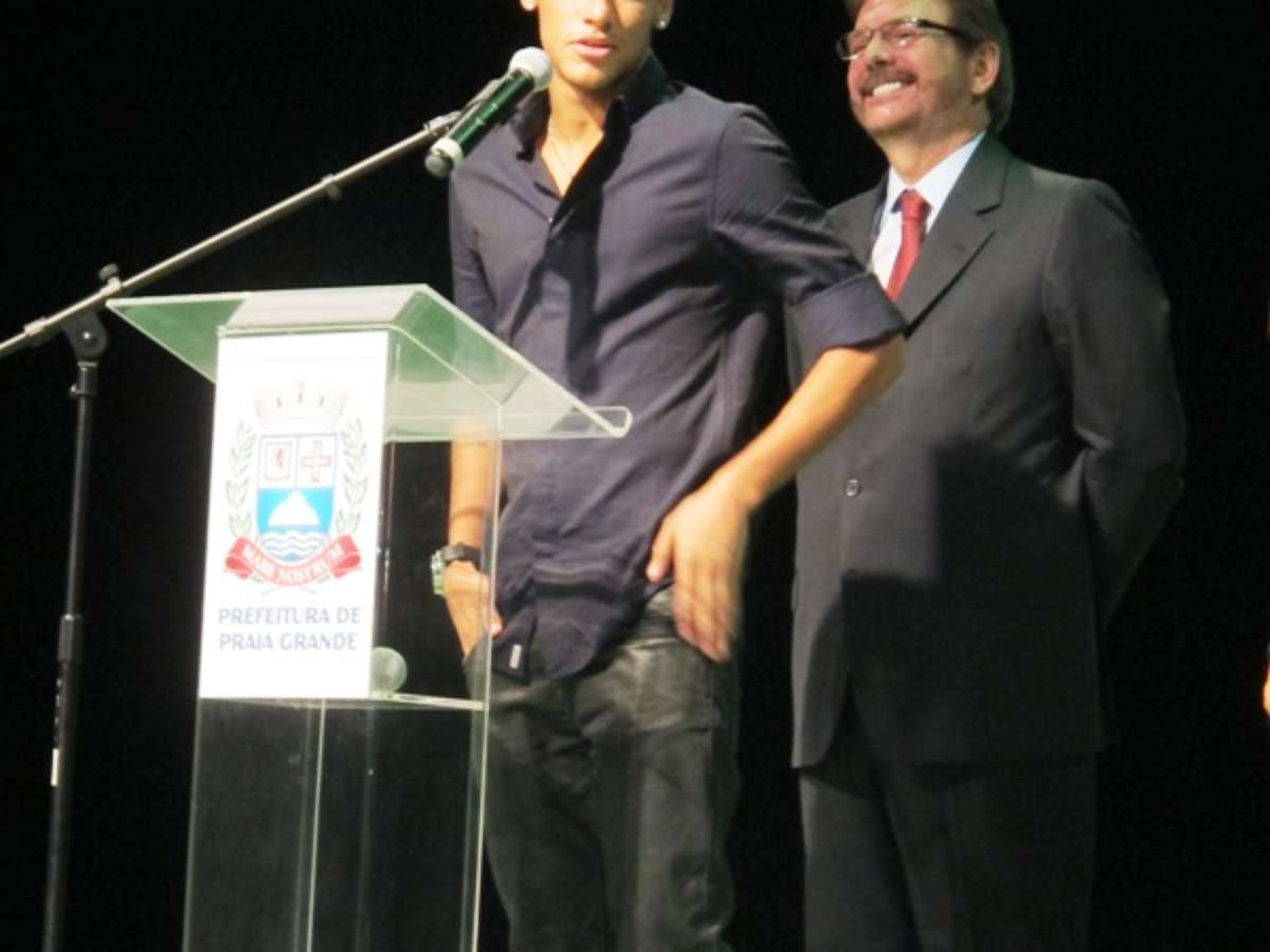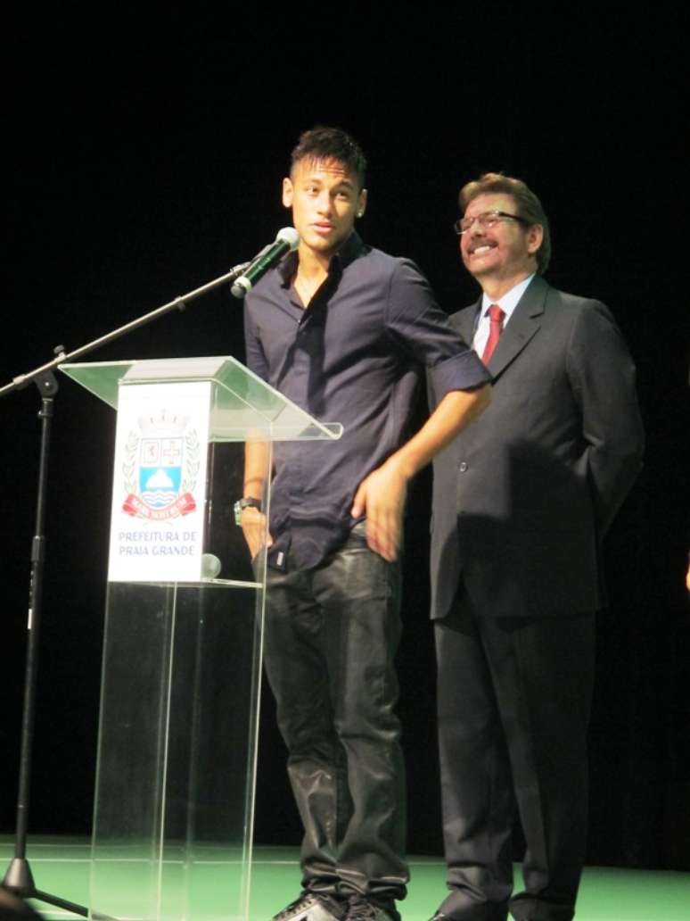 A apresentação do instituto de Neymar, no Palácio das Artes, em Praia Grande, litoral de São Paulo, nesta sexta-feira, foi marcada por discurso extenso do tio do craque santista além de incessantes aparições de políticos da região.