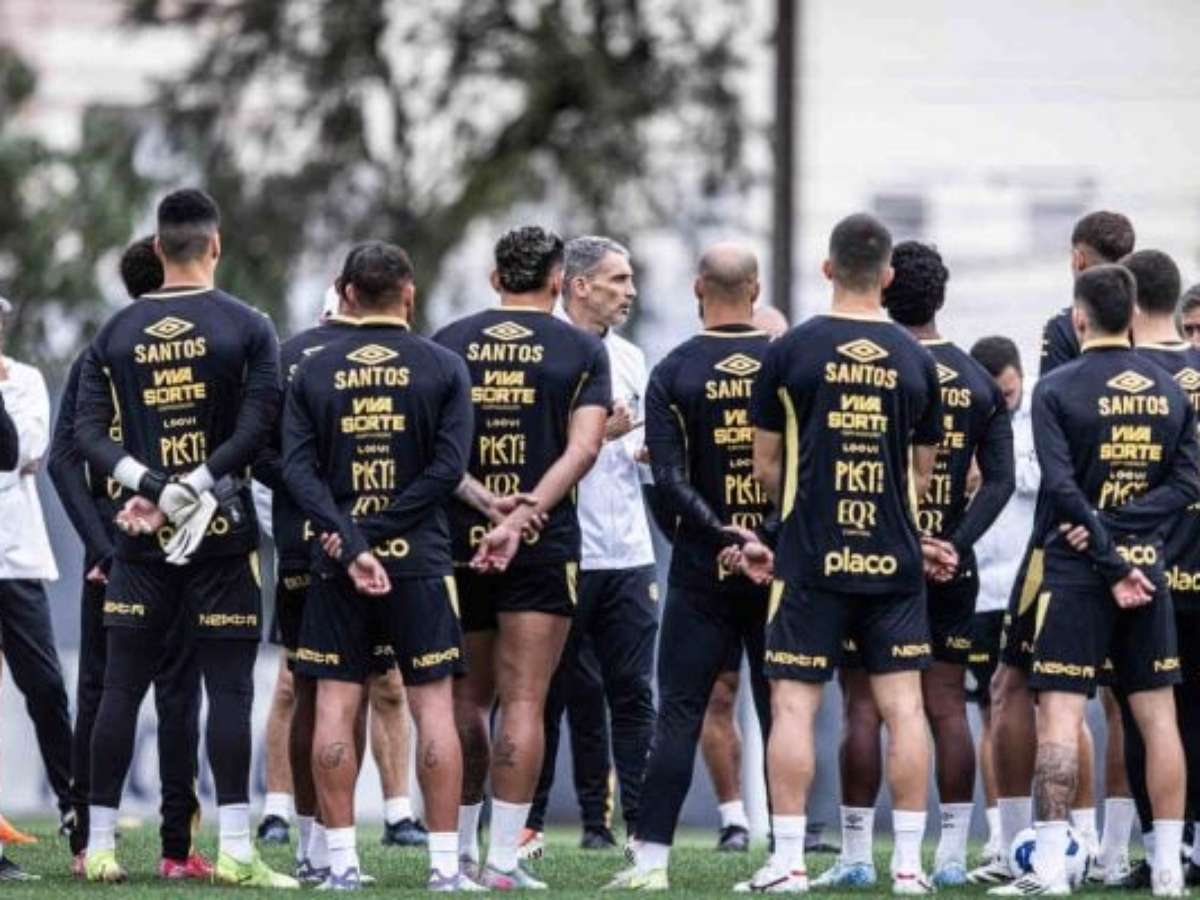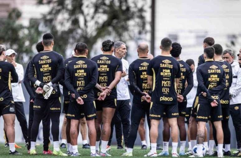 Técnico conversa com o elenco, mas ainda não contou com seu camisa 10, que não participou do treino do Peixe nesta quarta-feira (27)
