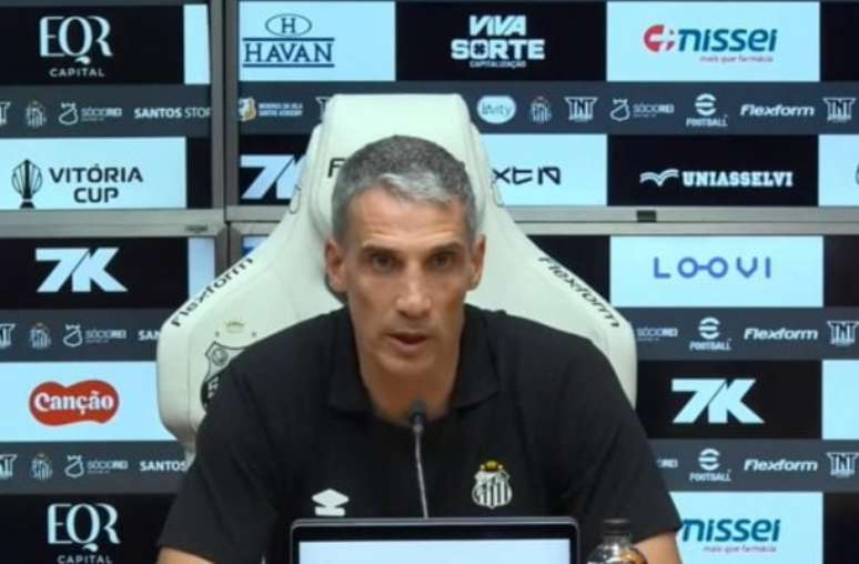"Enfrentamos um clássico, um adversário bom, em seu campo, em seu gramado. Quanto a dados ou estatísticas de jogo, o time criou finalizações. Teve boa postura quanto à posse de bola, defendeu bem. O gol que sofremos não acho que foi um erro tático. Foi um bate-rebate e ficou uma bola para eles, que define o jogo. O time terminou o jogo com dois chutes bons. Uma postura boa do Santos", iniciou o técnico.