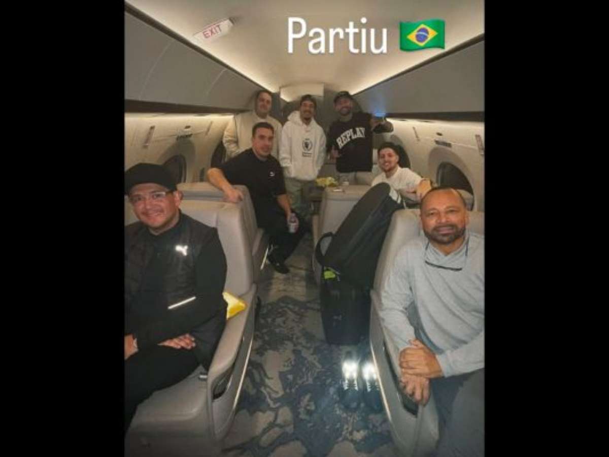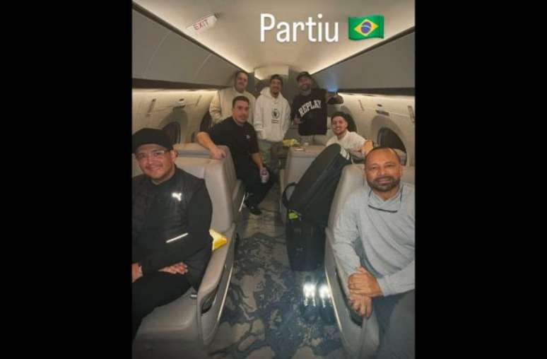 O craque embarcou acompanhado de seu pai e empresário, familiares e amigos como Gil Cebola e João Pedro Cemin. O trio inclusive publicou registros dos duelos acirrados de dominó para ajudar a passar o tempo.
