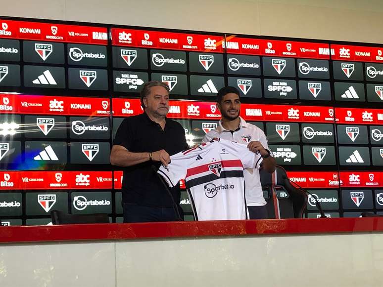 O meio-campista Michel Araujo foi oficialmente apresentado como jogador do São Paulo na manhã desta terça-feira, no CT da Barra Funda. O uruguaio está emprestado pelo Fluminense até o fim de 2024.