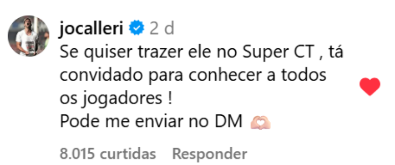 Comovido com a história, Calleri respondeu diretamente ao apelo e convidou Vô Nego para conhecer o CT da Barra Funda, onde poderá encontrar os jogadores e acompanhar de perto a rotina do elenco tricolor. O gesto foi amplamente elogiado por torcedores nas redes sociais, que destacaram a conexão emocional entre o atleta e o clube.