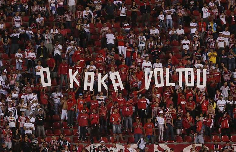 A recepção foi digna da volta para casa de um ídolo. No céu paulistano, balões subiram atrelados a uma bandeira com o rosto do jogador enquanto ‘Hells Bells’, do AC/DC, anunciava o que viria. Os gritos de “voltou” eram todos para ele. O estádio com pouco mais de 29 mil pessoas também era sua “culpa”. No telão, uma mensagem de retorno para “kasa” saudava a volta do bom filho. Em campo, com a faixa de capitão no braço, uma figura, que caminhava ao lado dos filhos, recebia todos os holofotes: Kaká estava de volta ao Morumbi com a camisa do São Paulo, em noite que terminou perfeita com a vitória por 3 a 1 sobre o Vitória.