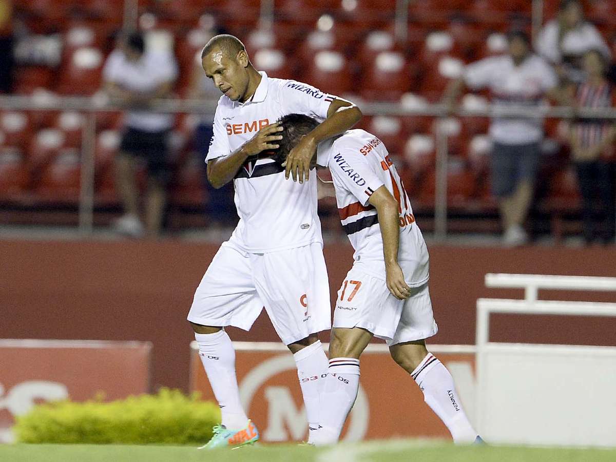 A superioridade são-paulina ficou clara desde o início da partida desta quarta. Logo aos 11min, Osvaldo, que mais uma vez fez bom jogo, chutou forte de fora da área e, no rebote do goleiro, Luís Fabiano completou para o gol. Seria o início do show do atacante, que teve continuidade cinco minutos mais tarde: toque de Osvaldo para o centroavante, que fintou o goleiro adversário para estufar as redes.