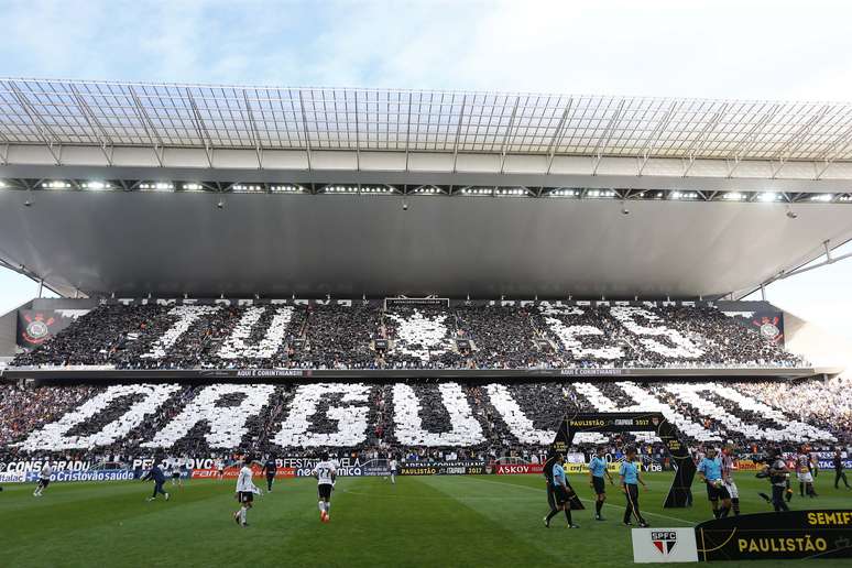 Nas arquibancadas, preenchidas apenas por torcedores do Corinthians por conta de medida de segurança que vigora no Estado, também prevalecia o otimismo. Um mosaico foi formado no setor leste de Itaquera quando o time da casa e o São Paulo pisaram no gramado: "Tu és orgulho".