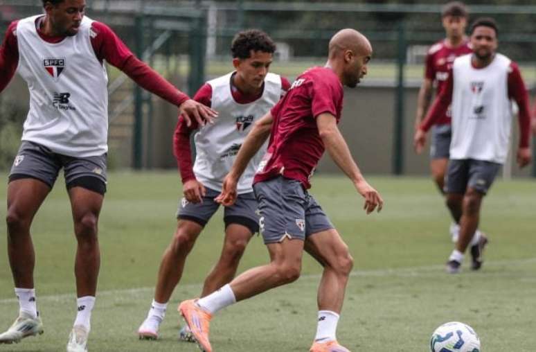 O São Paulo realizou na manhã deste sábado (11), no CT da Barra Funda, um treino coletivo focado na preparação para enfrentar o Grêmio. O jogo está marcado para quinta-feira (16), às 19h, em Porto Alegre, pela 28ª rodada do Campeonato Brasileiro.