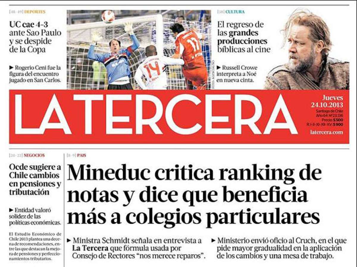 O jornal El Mercurio, um dos principais do país, destaca a vitória do São Paulo no topo de sua capa. Nas páginas internas, relata a vitória tricolor e destaca a atuação do “veterano” Rogério Ceni, 40 anos.
